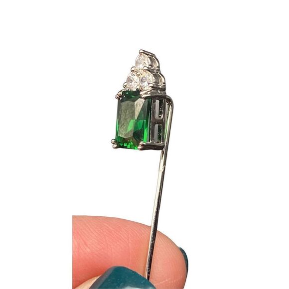 Vintage Emerald green center stone with three round stone silver tone stick pin