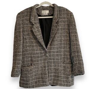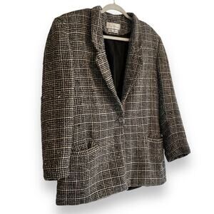 Vintage Emil Rutenbeg Gray Tweed Silver Accent Handwoven Silk Blazer Size Large