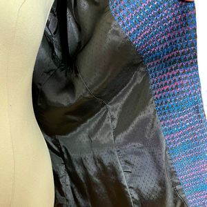 Vintage Emil Rutenberg Women's Silk Tweed Blazer Jacket Handwoven One Button Blue S