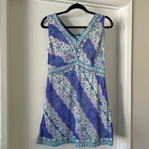 Vibrant vintage slip dress with sweet floral design. Features turquoise and purple hues. Sleeveless style by Emilio Pucci. In very good vintage condition!