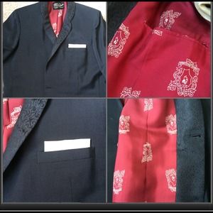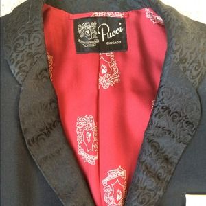 Vintage black Emilio Pucci tuxedo jacket. Beautiful black on black damask pattern on collar as well as cuff of sleeves. Inside of jacket lined in Pucci red silk. Originally purchased for $2,500 from Pucci. Custom design by Pucci himself. This item is vintage and has been worn. Spectacular condition. Comes with original silk pocket square. SPOT ON JACKET IN PHOTO IS FROM THE SUN THRU THE WINDOW. There ARE NO IMPERFECTIONS! NO PP/TRADES. WILL BUNDLE!