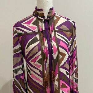 Vintage Emilio Pucci 100% Silk Midi Geometric Patterned Dress Size 8