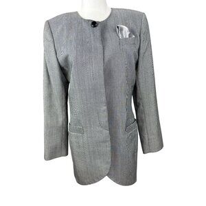 Vintage Emily 8 Womens Blazer Jacket Gray Houndstooth Long Sleeve Elegant Chic