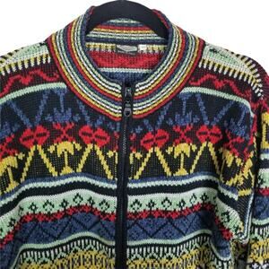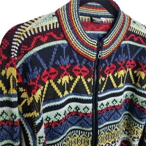 Vintage Emmegi Womens Fair Isle Wool Sweater Jacket Full Zip Nordic Indie US 6