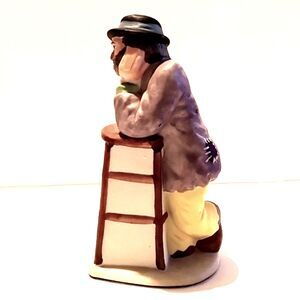 Add a touch of whimsy to your collection with this charming Vintage Emmett Kelly Ceramic Clown with Stool by Flambro. This delightful figurine features the iconic clown Emmett Kelly in a classic pose, leaning on a high stool with his head resting in his hands, capturing his thoughtful and endearing character. Produced by Flambro and signed on the bottom, this collectible piece stands approximately 5 3/4" tall. With its detailed craftsmanship and vintage appeal, this figurine is perfect for fans of Emmett Kelly, clown enthusiasts, or vintage ceramic collectors. Don’t miss the chance to bring home this nostalgic treasure!