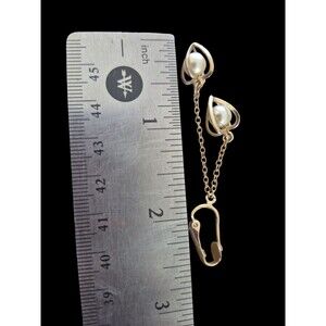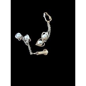 Up for sale is a - Vintage Emmons Dangle Drop Earrings Gold Tone Open Heart Faux Pearl Chain