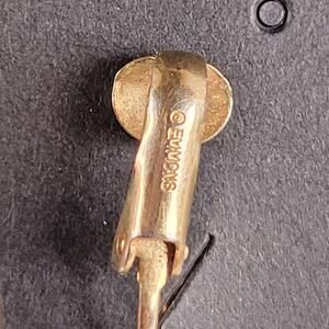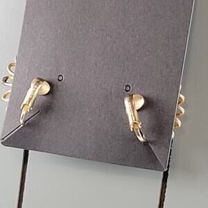 Vintage Emmons clip-on earrings featuring a floral design with gold-tone loops and a white cabochon center. Classic mid-century style, perfect for collectors or daily wear. Secure clip-on backs. Approx. 1.27 inches in diameter.