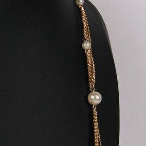 Vintage Emmons Gold-Tone Chain & Faux Pearl Necklace 23"