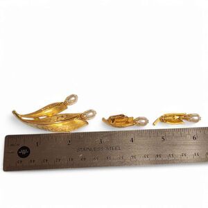 Vintage Emmons Lily of the Valley Brooch & Clip-On Earrings Set, Gold tone pearl