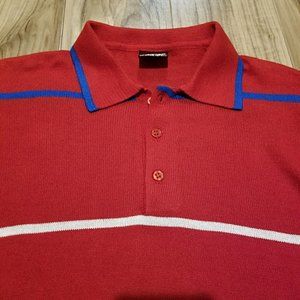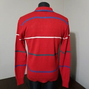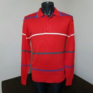 Vintage Emphasis Sweater Knit Polo Shirt Mens Large Red Striped Long Sleeve