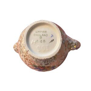 Add a touch of mid-century charm to your tea service with this beautifully detailed Empire England creamer. Produced in the 1950s–1960s, this petite pitcher features a delicate gold-trimmed floral chintz pattern and hand-applied accent details — a classic example of Empire Porcelain’s mid-century transferware style.