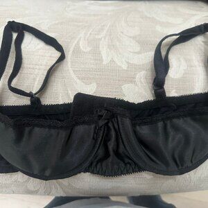 Uber-sexy 1990s black satin quarter cup bra with underwire lift + bow detail. Leaves just enough to the imagination ๐.