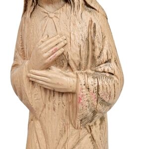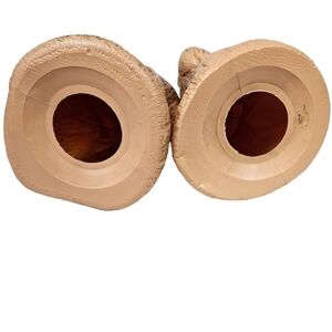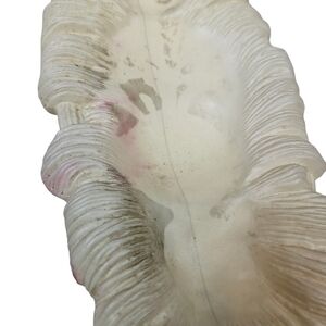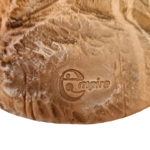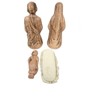 Vintage 60s ornate Nativity blow mold set. Stamped Empire Plastic on the backs of the figures. These are a faux wood grain design, and are a brownish beige color. The manger is an off white. I believe these were made to be in a lighted stable, however lights could easily be added inside Mary and Joseph. The manger has some light pink markings and Mary has some light pink markings, please notice pictures, otherwise the set is in great vintage condition