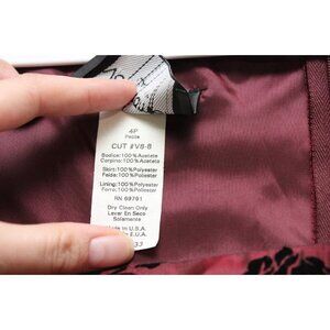 This vintage empire waist gown by Von Bramlett is a perfect choice for a petite wedding guest or formal event. The long, red floral velvet dress features a square neckline, short sleeves, and a zip closure. With a whimsigoth theme and a touch of gothic style, this A-line maxi dress is both elegant and unique. Made of polyester and acetate, this dress is perfect for the winter, fall, and spring seasons. Made in the United States, this dress is sure to make a statement at any formal occasion.