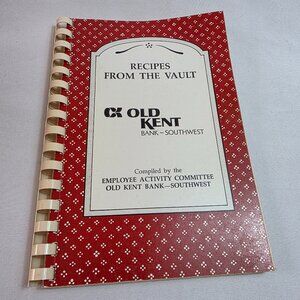 For sale is a vintage 1992 copy of Old Kent Bank Employee's Cookbook titled "Recipes from the Vault". The cookbook was published by Old Kent Bank Southwest Employee Activity Committee and contains employee favorite recipes. The cookbook is softcover and spiral bound. The cookbook is in good used condition with minor wear