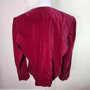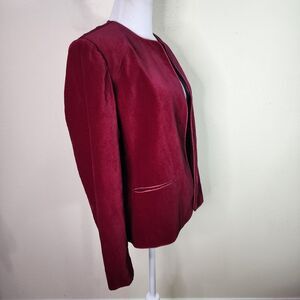 Vintage Emporium Capwell Womens Burgundy Wine Open Front Velvet Blazer Jacket 18