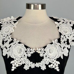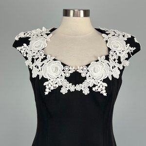 Vintage En Francais Huey Waltzer Black White Lace Trim Sheath Dress size 10