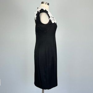 En Francais by Huey Waltzer vintage black sheath dress with white lace trim, size 10