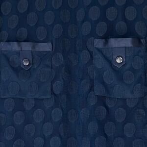 Women’s Vintage Y2K 2000s Short mini Dress. Navy blue with mesh polka dot over lay satin trim around neck and pockets. fabric is stretchy Tag says 8, but measures at a size 6