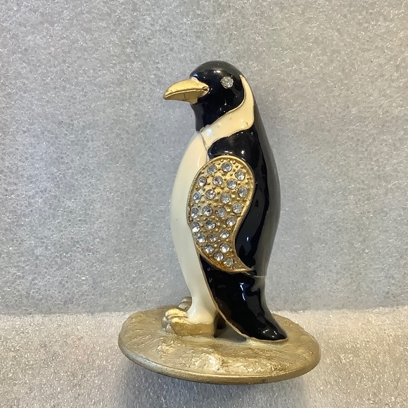 Vintage Enamel And Crystal Penguin Collectible Figurine