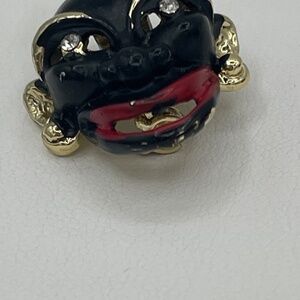 These Vintage Enamel Blackamoor Scatter Pins feature a unique vintage monkey mask design, perfect for occasions such as Mother's Day, Christmas, birthdays, and weddings. The pins are made of enamel and metal, with a white/colorless rhinestones accents With a theme that includes beauty, art, and animals & insects, these pins add a touch of vintage charm to any outfit. The Blackamore brand adds a touch of authenticity to these original pieces, making them a wonderful addition to any jewelry collection for both men and women. Some areas of slight paint loss.