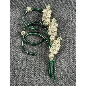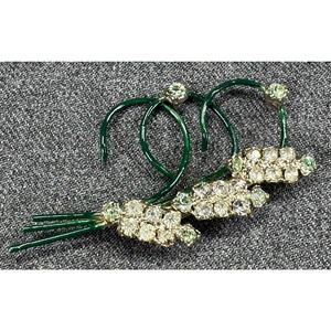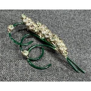 Add a touch of vintage charm to your collection with this exquisite enamel brooch! This lovely piece features a green enamel backdrop, beautifully complemented by sparkling clear crystals bookended by light green rhinestones on each leaf or petal. The intricate design and classic appeal make it a perfect accessory for any occasion. It's in great vintage condition and ready to wear or display!