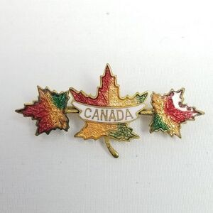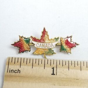 Vintage Enamel Canada Maple Leaf Bar Brooch, Colorful Fall Tones, Canadian