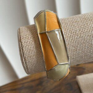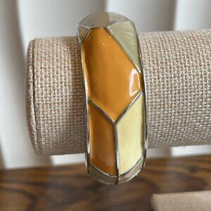 Vintage Enamel Clamper Bracelet Cuff Bangle Clamper Bracelet Orange Tan Yellow