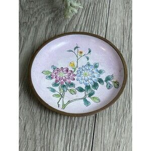 Vintage Enamel Coated Trinket Dish Pink Floral Country Cottage 3”