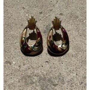 Vintage Enamel Door Crown Knocker Pierced Earrings 80’s Multicolor Made in USA