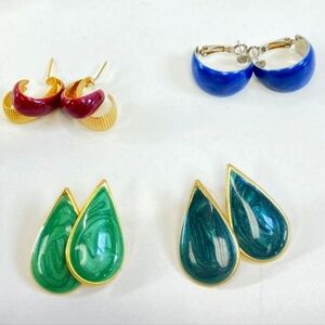 Vintage Enamel Earrings Multicolor Teardrop Earrings Set Of 5