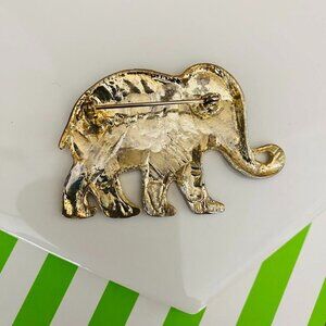 Vintage Enamel Elephant Brooch Pin Green and Gold Tone