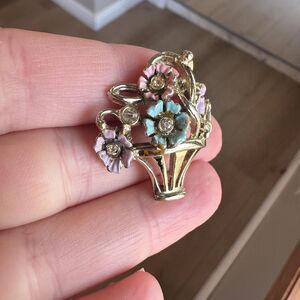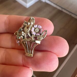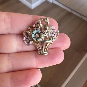 Vintage Enamel Flower Arrangement in Vase Brooch Pin Floral Spring Flowers