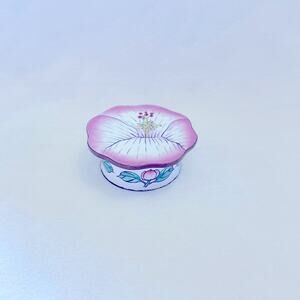 Vintage Enamel Flower Lidded Trinket Box Jewelry Box Ring Holder Asian Art