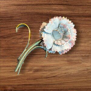 Vintage Enamel Flower Pin Brooch Retro Carnation Design Blue & Pink on Gold-Tone