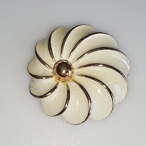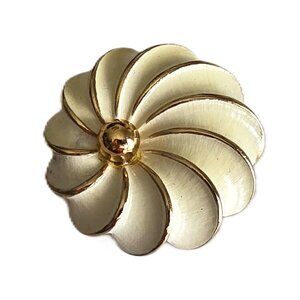 NWOT - This vintage enamel gold plated flower brooch is a beautiful and timeless piece of jewelry. The brooch features a delicate flower shape with a white main stone set in yellow gold-plated metal.