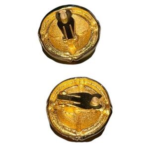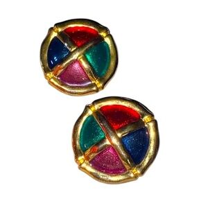 Vintage Enamel Gold Tone Round Clip On Earrings