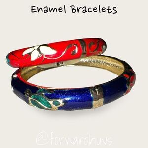 Vintage Enamel Hinge Bracelets: Turtle & Flower Theme