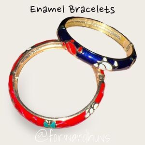 Elevate your accessory collection with this charming set of vintage enamel hinge bracelets, featuring delightful turtle and flower motifs. Crafted with exquisite attention to detail, these bracelets exude timeless elegance and vintage charm.