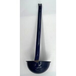 Vintage Enamel Ladle Large Blue Dipper Scoop 11 1/2" Serving Soup, Cider