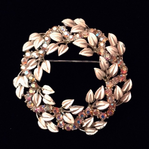 Beautiful vintage brooch. The rhinestones are bright and shiny. The clasp works well. Measurements: 2” x 2”