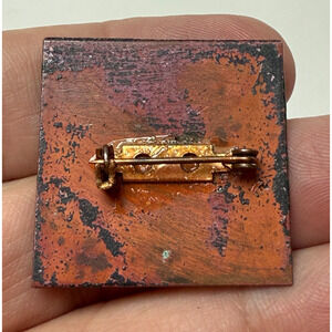 Vintage Enamel Over Copper Square Pin Brooch Modernist MCM Green Yellow Retro. Unsigned. 1.25" x 1.25". Light wear.
