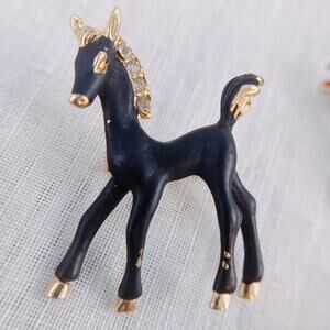 Condition: Very good vintage condition; no missing stones; Minor chipping of black paint on horse's legs.