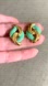 This is a beautiful set of vintage enameled clip-on earrings from the 1980’s. They are a turquoise color in a gold tone setting. They are in excellent condition and function properly.