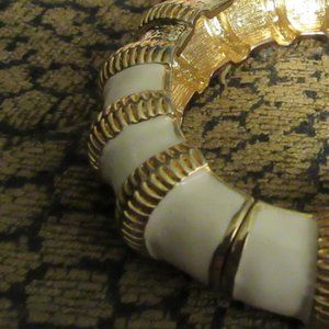 Vintage Enamel White and Goldtone Cuff Bracelet