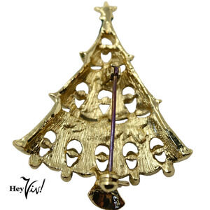 Vintage Enamel and Rhinestone Christmas Tree Pin Holiday Brooch 2.25" - Hey Viv