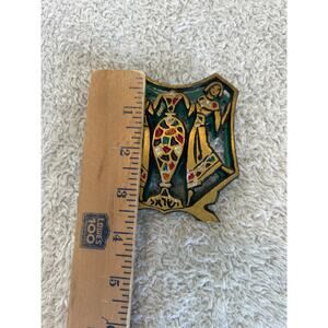 Vintage Enameled Brass Napkin Holder Egyptian Ladies with Pottery