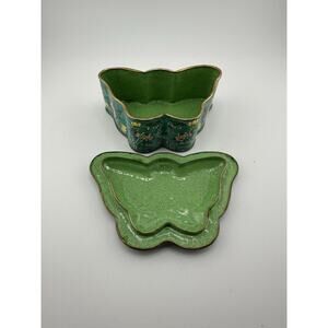 Vintage Enameled Cloisonne Chinese Butterfly Shaped Trinket Box Brass Mid Cent