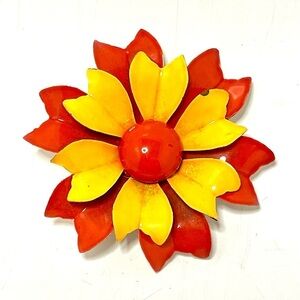 Gorgeous large 2.5 inch diameter flower. Enamel has one small chip and it is noted in second picture. Well made and beautiful.