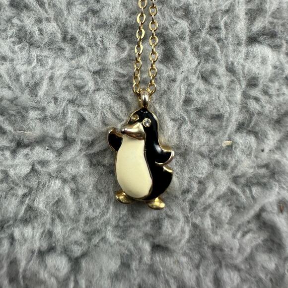 Vintage Enameled Gold Toned Penguin Pendant